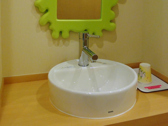 子供用の洗口コーナー。お子様の背丈に合わせてあります。