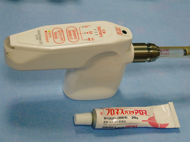 表面麻酔ゼリーと併用して、痛みの非常に少ない治療を行います。